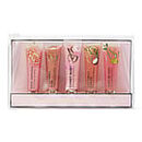 The Flavor Gloss set you love, now with a whole new look. This clear totable pouch includes your favorites of Pink Mimosa, Caramel Kiss, Candy Baby, Coconut Cream, and Kiwi Blush. Swipe on, shine on