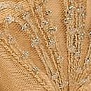 - Ornate, scalloped gold fan embroidery with sequins, designed in Europe